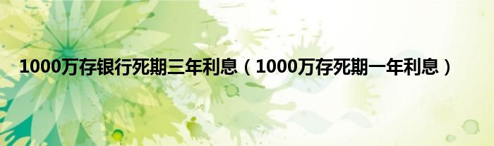 大家好,小常来为大家解答以上问题。1000万存银行死期三年利息,1000万存死期一年利息很多人还不知道,现在让我们一起来看看吧!