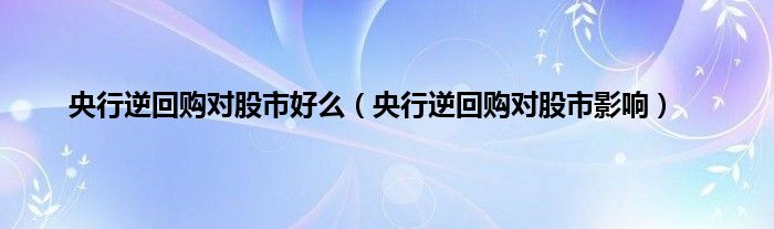 大家好,小常来为大家解答以上问题。央行逆回购对股市好么,央行逆回购对股市影响很多人还不知道,现在让我们一起来看看吧!