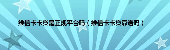 大家好,小常来为大家解答以上问题。维信卡卡贷是正规平台吗,维信卡卡贷靠谱吗很多人还不知道,现在让我们一起来看看吧!