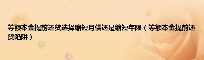 大家好,小常来为大家解答以上问题。等额本金提前还贷选择缩短月供还是缩短年限,等额本金提前还贷陷阱很多人还不知道,现在让我们一起来看看吧!