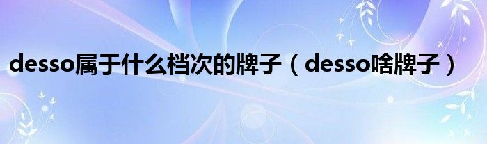 大家好,小科来为大家解答以上问题。desso属于什么档次的牌子,desso啥牌子很多人还不知道,现在让我们一起来看看吧!