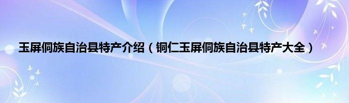 大家好,小常来为大家解答以上问题。玉屏侗族自治县特产介绍,铜仁玉屏侗族自治县特产大全很多人还不知道,现在让我们一起来看看吧!