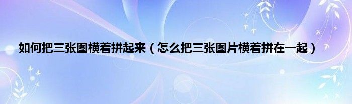 大家好,小常来为大家解答以上问题。如何把三张图横着拼起来,怎么把三张图片横着拼在一起很多人还不知道,现在让我们一起来看看吧!