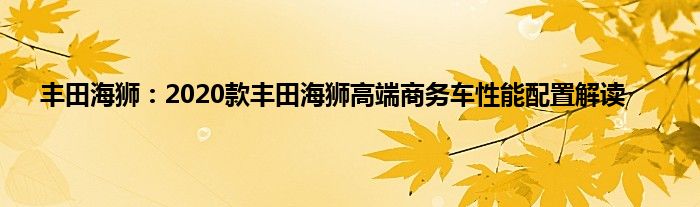 丰田海狮:2020款丰田海狮高端商务车性能配置解读