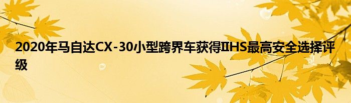 2020年马自达CX-30已经走出大门,在安全战线上摇摆,赢得了公路安全保险协会(II HS)顶级安全挑选奖在其上市的第一年。