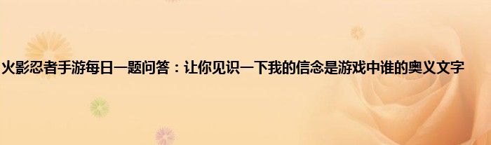 小编今天给各位玩家朋友们带来的是火影忍者手游每日一题问答:让你见识一下,我的信念!是游戏中谁的奥义文字,有记得的玩家朋友吗?不记得也没有关系,小编已经帮助大家把火影忍者手游每日一题问答:让你见识一下,我的信念!是游戏中谁的奥义文字找了出来,你只需要动动你的小手就可以轻松知道啦,快来瞧一瞧吧。