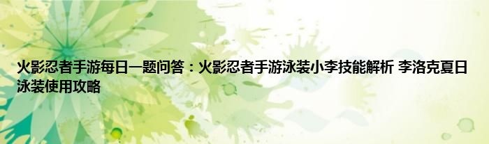 以上就是火影忍者手游每日一题问答:火影忍者手游泳装小李技能解析,李洛克夏日泳装使用攻略的推荐,相信通过火影忍者手游每日一题问答:火影忍者手游泳装小李技能解析,李洛克夏日泳装使用攻略这篇文章能帮到你,也欢迎对游戏很感兴趣小伙伴们一起来探讨。