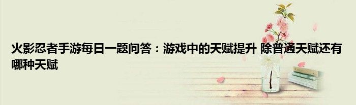 以上就是火影忍者手游每日一题问答:游戏中的天赋提升,除普通天赋还有哪种天赋的推荐,相信通过火影忍者手游每日一题问答:游戏中的天赋提升,除普通天赋还有哪种天赋这篇文章能帮到你,也欢迎对游戏很感兴趣小伙伴们一起来探讨。