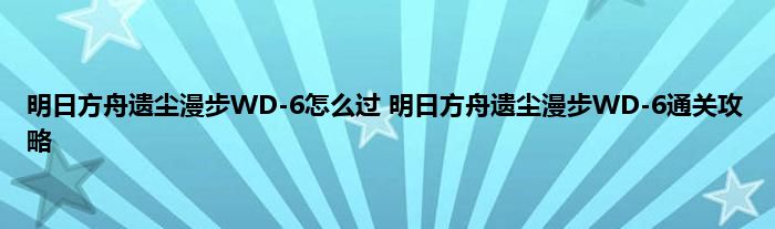 明日方舟遗尘闲逛WD-6怎么过?明日方舟遗尘闲逛关卡已经正式发布了,这次的难度总体来说还是比较低的,WD-6以后才会比较有难度。WD-6具体的通关方法可能会难住一些萌新,下面就带来了具体的通关攻略,希翼大家喜欢。