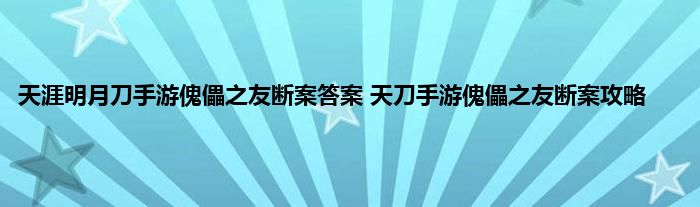 天涯明月刀手游傀儡之友断案答案,天涯明月刀手游中有一个傀儡之友断案的玩法,需要玩家找到正确答案,找到答案之后可以获得奖励,很多玩家不知道答案内容,下面就来尾随小编一起来看看具体的答案是什么。