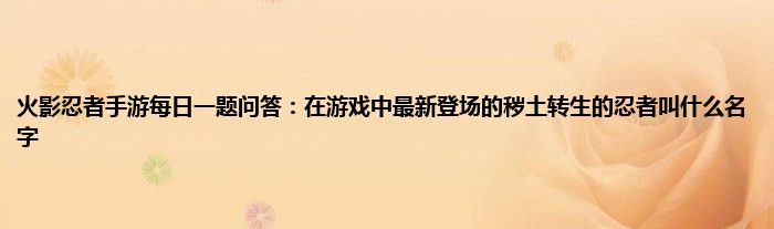 在游戏中,最新登场的[秽土转生]的忍者叫什么名字?(请答全名)
