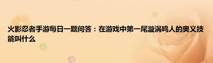 今天来聊聊关于火影忍者手游每日一题问答:在游戏中第一尾漩涡鸣人的奥义技能叫什么的文章,游戏是很多人的选择,但是游戏玩多了也会身心疲惫,现在就为大家来简单介绍下火影忍者手游每日一题问答:在游戏中第一尾漩涡鸣人的奥义技能叫什么,希望对各位小伙伴们有所帮助。