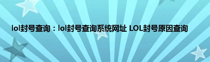 今天来聊聊关于lol封号查询:lol封号查询系统网址,LOL封号原因查询的文章,游戏是很多人的选择,但是游戏玩多了也会身心疲惫,现在就为大家来简单介绍下lol封号查询:lol封号查询系统网址,LOL封号原因查询,希望对各位小伙伴们有所帮助。