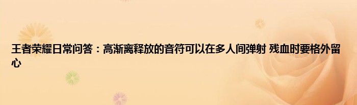 今天来聊聊关于王者荣耀日常问答:高渐离释放的音符可以在多人间弹射,残血时要格外留心的文章,游戏是很多人的选择,但是游戏玩多了也会身心疲惫,现在就为大家来简单介绍下王者荣耀日常问答:高渐离释放的音符可以在多人间弹射,残血时要格外留心,希望对各位小伙伴们有所帮助。
