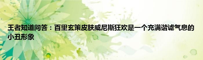 以上就是王者知道问答:百里玄策皮肤威尼斯狂欢是一个充满谐谑气息的小丑形象的推荐,相信通过王者知道问答:百里玄策皮肤威尼斯狂欢是一个充满谐谑气息的小丑形象这篇文章能帮到你,也欢迎对游戏很感兴趣小伙伴们一起来探讨。