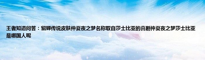 问:貂蝉传说皮肤-仲夏夜之梦名称取自莎士比亚的喜剧《仲夏夜之梦》,莎士比亚是哪国人呢?