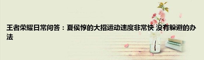 以上就是王者荣耀日常问答:夏侯惇的大招运动速度非常快,没有躲避的办法的推荐,相信通过王者荣耀日常问答:夏侯惇的大招运动速度非常快,没有躲避的办法这篇文章能帮到你,也欢迎对游戏很感兴趣小伙伴们一起来探讨。