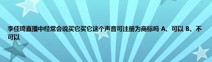 以上就是李佳琦直播中经常会说买它买它这个声音可注册为商标吗 A、可以 B、不可以的推荐,相信通过李佳琦直播中经常会说买它买它这个声音可注册为商标吗 A、可以 B、不可以这篇文章能帮到你,也欢迎对游戏很感兴趣小伙伴们一起来探讨。