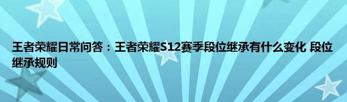 今天来聊聊关于王者荣耀日常问答:王者荣耀S12赛季段位继承有什么变化,段位继承规则的文章,游戏是很多人的选择,但是游戏玩多了也会身心疲惫,现在就为大家来简单介绍下王者荣耀日常问答:王者荣耀S12赛季段位继承有什么变化,段位继承规则,希望对各位小伙伴们有所帮助。