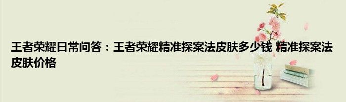 以上就是王者荣耀日常问答:王者荣耀精准探案法皮肤多少钱,精准探案法皮肤价格的推荐,相信通过王者荣耀日常问答:王者荣耀精准探案法皮肤多少钱,精准探案法皮肤价格这篇文章能帮到你,也欢迎对游戏很感兴趣小伙伴们一起来探讨。
