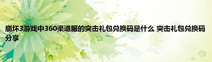 今天来聊聊关于崩坏3游戏中360渠道服的突击礼包兑换码是什么 突击礼包兑换码分享的文章,游戏是很多人的选择,但是游戏玩多了也会身心疲惫,现在就为大家来简单介绍下崩坏3游戏中360渠道服的突击礼包兑换码是什么 突击礼包兑换码分享,希望对各位小伙伴们有所帮助。
