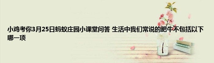 今天来聊聊一篇关于小鸡考你3月25日蚂蚁庄园小课堂问答 生活中我们常说的肥牛不包括以下哪一项的文章,现在就为大家来简单介绍下小鸡考你3月25日蚂蚁庄园小课堂问答 生活中我们常说的肥牛不包括以下哪一项,希望对各位小伙伴们有所帮助。
