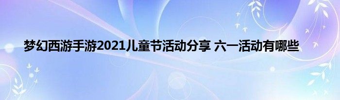 2021年儿童节即将就要到来了,梦幻西游手游中在每年六一来临之际都会给玩家们带来一些活动玩法,今天的六一也不例外,玩家可以在六一当中得到很多福利奖励。很多玩家不知道2021年的六一活动是什么?以及六一活动要怎么来玩?那下面就让小编给玩家们带来详细的介绍,一起看下活动攻略吧。