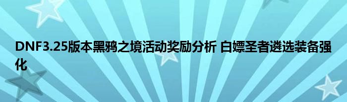 dnf3.25版本今日上线了,大家期待很久的黑鸦之境新副本的配套活动也上线了,那么,这个活动怎么玩,奖励如何呢?有关黑鸦之境的活动还是很不错的,小编今天给大家过一遍。