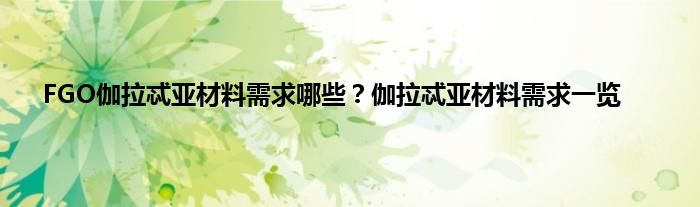 FGO伽拉忒亚材料需求一览