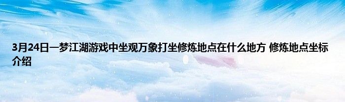 以上就是3月24日一梦江湖游戏中坐观万象打坐修炼地点在什么地方 修炼地点坐标介绍的推荐,相信通过3月24日一梦江湖游戏中坐观万象打坐修炼地点在什么地方 修炼地点坐标介绍这篇文章能帮到你,也欢迎对游戏很感兴趣小伙伴们一起来探讨。