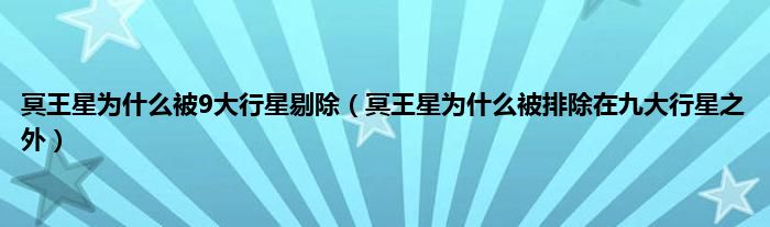 大家好,小科来为大家解答以上问题。冥王星为什么被9大行星剔除,冥王星为什么被排除在九大行星之外很多人还不知道,现在让我们一起来看看吧!