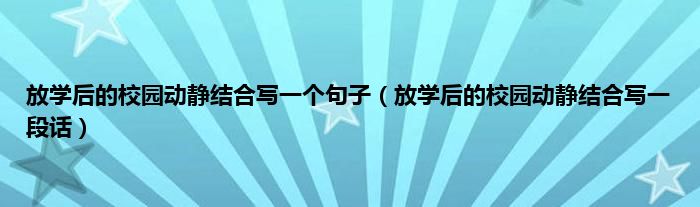 大家好,小科来为大家解答以上问题。放学后的校园动静结合写一个句子,放学后的校园动静结合写一段话很多人还不知道,现在让我们一起来看看吧!