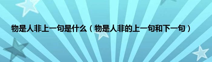 大家好,小科来为大家解答以上问题。物是人非上一句是什么,物是人非的上一句和下一句很多人还不知道,现在让我们一起来看看吧!
