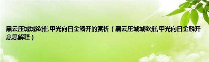 大家好,小科来为大家解答以上问题。黑云压城城欲摧,甲光向日金鳞开的赏析,黑云压城城欲摧,甲光向日金麟开意思解释很多人还不知道,现在让我们一起来看看吧!
