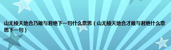 1、 山无棱天地合才敢与君绝什么意思下一句:“答案是:只有当山变得平坦,天地融为一体,我才会愿意与你分离。