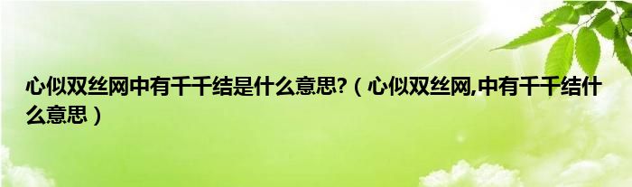 大家好,小科来为大家解答以上问题。心似双丝网中有千千结是什么意思?,心似双丝网,中有千千结什么意思很多人还不知道,现在让我们一起来看看吧!