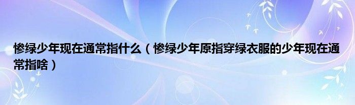 大家好,小科来为大家解答以上问题。惨绿少年现在通常指什么,惨绿少年原指穿绿衣服的少年现在通常指啥很多人还不知道,现在让我们一起来看看吧!