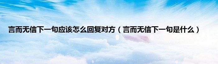 大家好,小科来为大家解答以上问题。言而无信下一句应该怎么回复对方,言而无信下一句是什么很多人还不知道,现在让我们一起来看看吧!