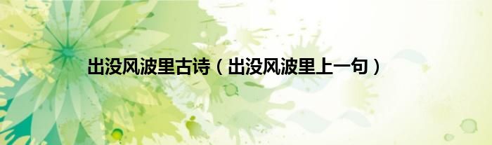 大家好,小科来为大家解答以上问题。出没风波里古诗,出没风波里上一句很多人还不知道,现在让我们一起来看看吧!
