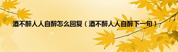 大家好,小科来为大家解答以上问题。酒不醉人人自醉怎么回复,酒不醉人人自醉下一句很多人还不知道,现在让我们一起来看看吧!