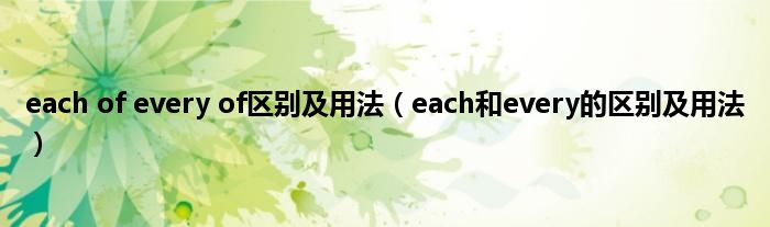 大家好,小科来为大家解答以上问题。each of every of区别及用法,each和every的区别及用法很多人还不知道,现在让我们一起来看看吧!