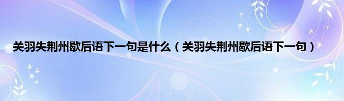 大家好,小科来为大家解答以上问题。关羽失荆州歇后语下一句是什么,关羽失荆州歇后语下一句很多人还不知道,现在让我们一起来看看吧!