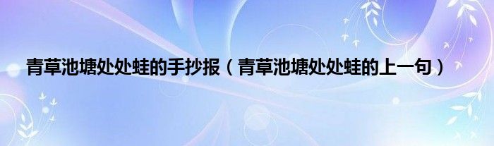 大家好,小科来为大家解答以上问题。青草池塘处处蛙的手抄报,青草池塘处处蛙的上一句很多人还不知道,现在让我们一起来看看吧!