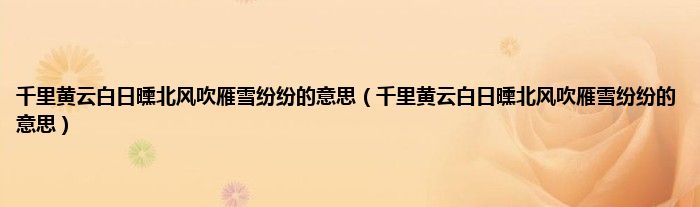 大家好,小科来为大家解答以上问题。千里黄云白日曛北风吹雁雪纷纷的意思,千里黄云白日曛北风吹雁雪纷纷的意思很多人还不知道,现在让我们一起来看看吧!