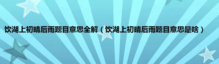 大家好,小科来为大家解答以上问题。饮湖上初晴后雨题目意思全解,饮湖上初晴后雨题目意思是啥很多人还不知道,现在让我们一起来看看吧!
