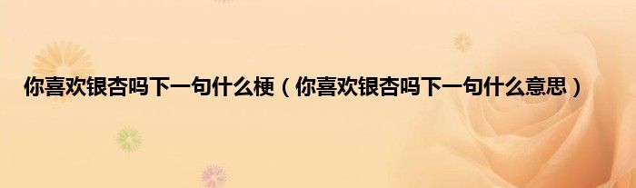大家好,小科来为大家解答以上问题。你喜欢银杏吗下一句什么梗,你喜欢银杏吗下一句什么意思很多人还不知道,现在让我们一起来看看吧!