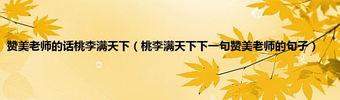 大家好,小科来为大家解答以上问题。赞美老师的话桃李满天下,桃李满天下下一句赞美老师的句子很多人还不知道,现在让我们一起来看看吧!