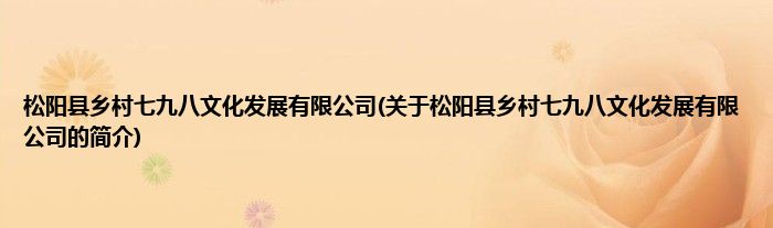 本文关于松阳县乡村七九八文化发展有限公司的简介就讲解完毕,希望对大家有所帮助。