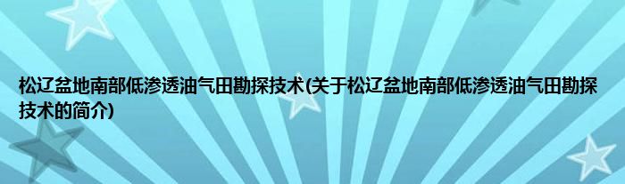 本文关于松辽盆地南部低渗透油气田勘探技术的简介就讲解完毕,希望对大家有所帮助。