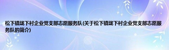 本文关于松下镇垅下村企业党支部志愿服务队的简介就讲解完毕,希望对大家有所帮助。